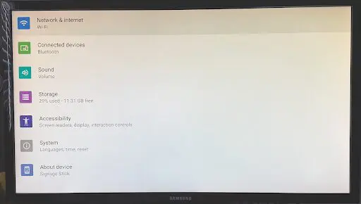 - PLUG IN Sign Stick (shipped separately) into the HDMI 1 slot on the back of the Screen.